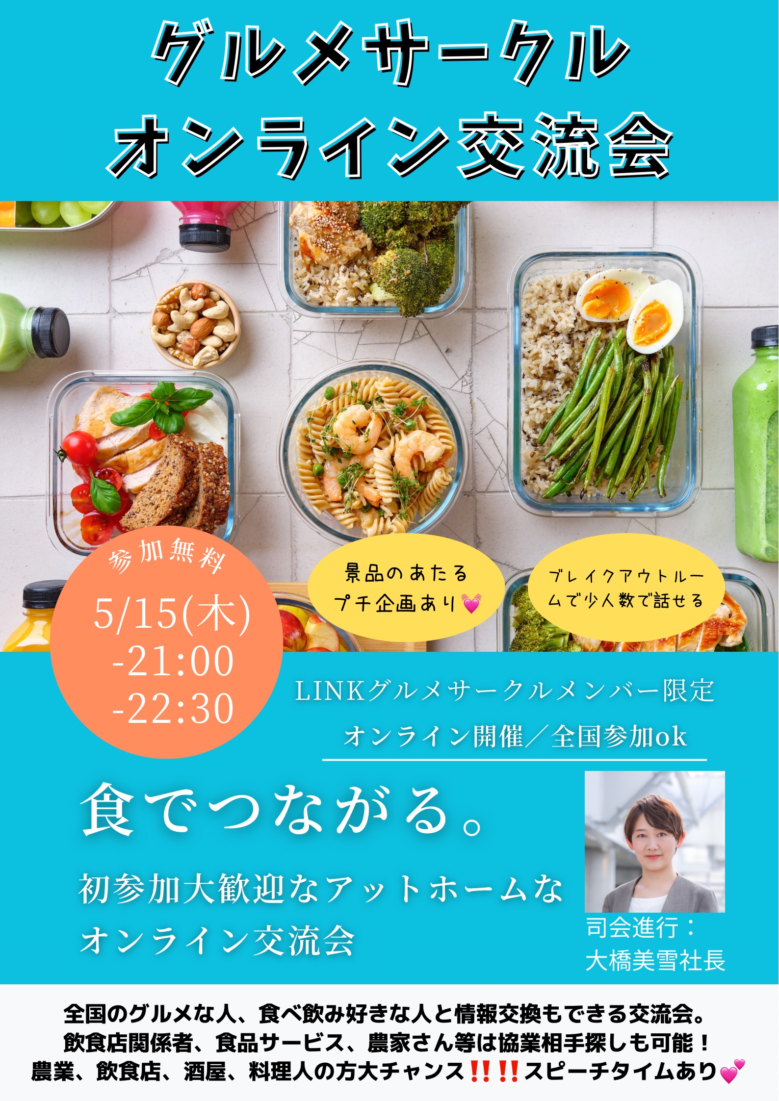 少人数で全国のグルメ好きな人と情報交換もできる交流会。飲食店関係者、食品サービス、農家さん等は協業相手探しも可能!