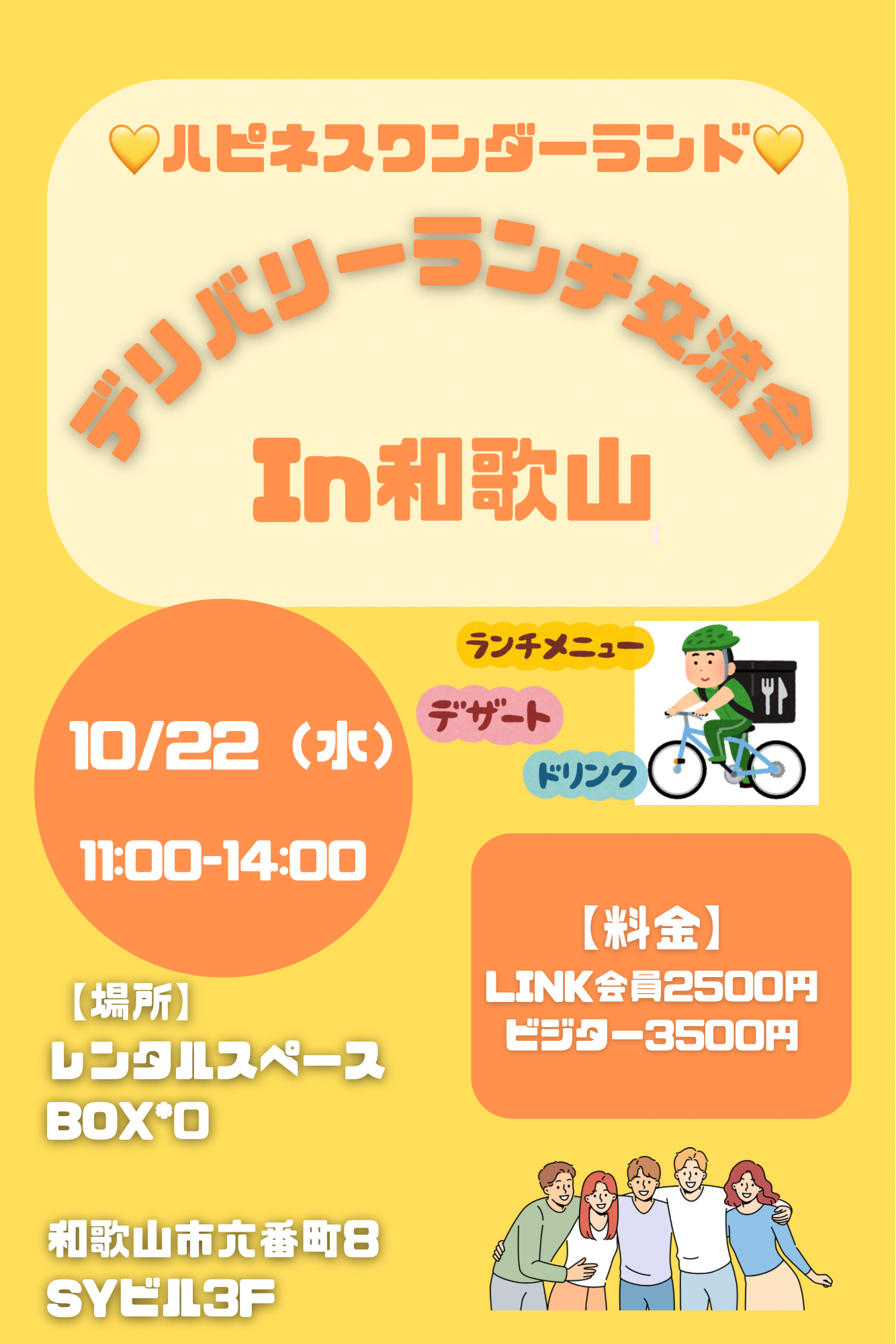 💛ハピネスワンダーランド💛デリバリーランチ交流会in和歌山