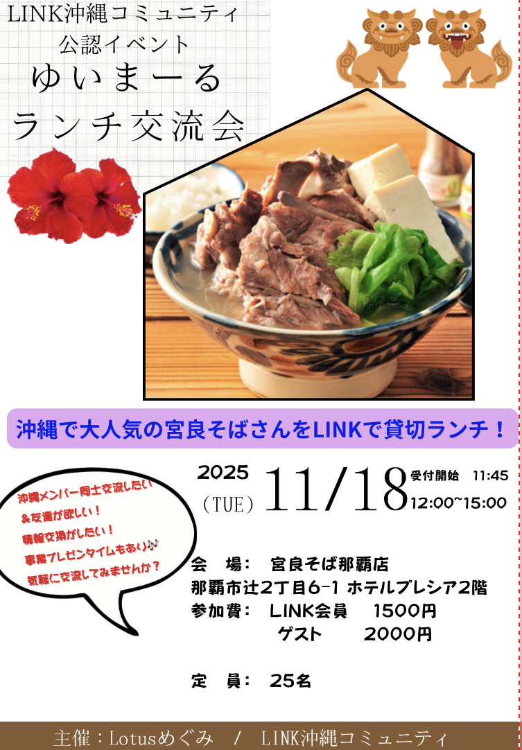 沖縄の名店 宮良そば那覇店にてゆいまーるランチ交流会を開催します🎵