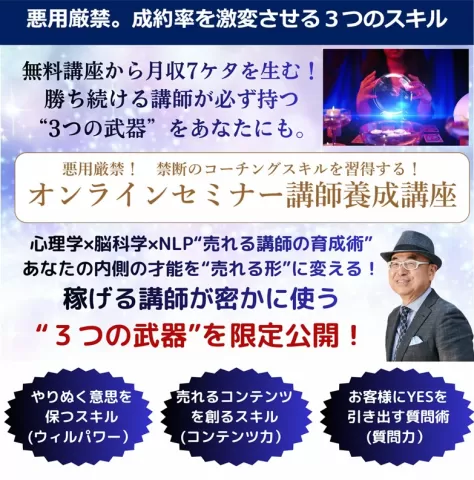 悪用厳禁! 禁断のコーチングスキルを活用して月収7ケタ稼ぐ! オンラインセミナー講師養成講座