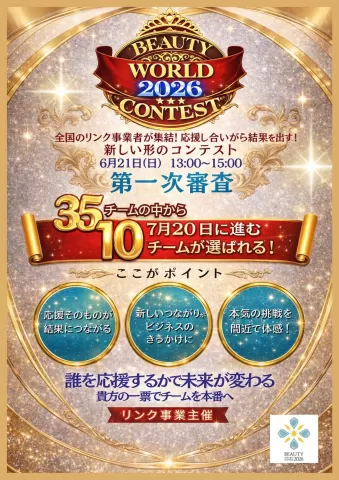 7.20(月) 13:00 | ビューティーアワードコンテスト2026年本大会 | 見た目磨きサークル部長 徳田裕実 | ZOOM |