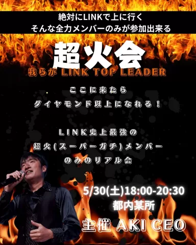 5.31(日) 13:30 | リアルBIG3の一つ。LINK最大級!No.1パーティー!全会員集合の【LINKセレモニー】 | 山田やよい、AKI CEO | 千葉県 |