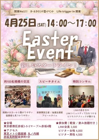 4.25(土) 14:00 | 🥚イースターイベント🐰ライフトリガーin関東 | AKI CEO、👑SHOKO | 東京23区 |