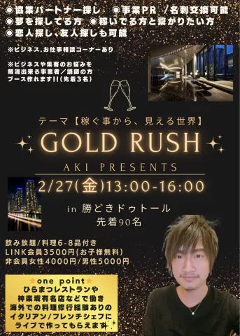 2.27(金) 13:00 | GOLD RUSH 2026 -CEO presents- 〜稼ぐ事から、見える世界〜 | AKI CEO | 東京23区 |