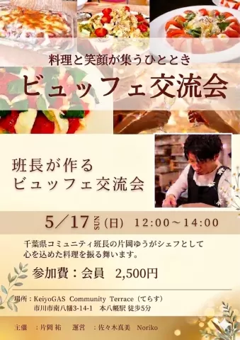 5.17(日) 12:00 | ✨第8回✨千葉班長が作るランチビュッフェ会🍽️ | 片岡祐/A.S | 千葉県 |