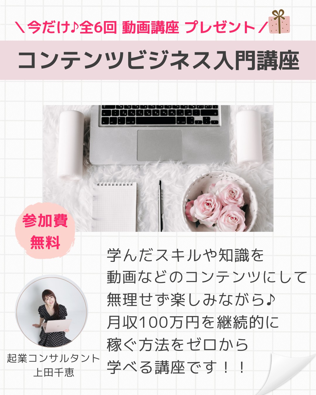 こちらの6回の動画講義の通りに組み立てていくと、コンテンツビジネスが形になる方もいらっしゃいます!
