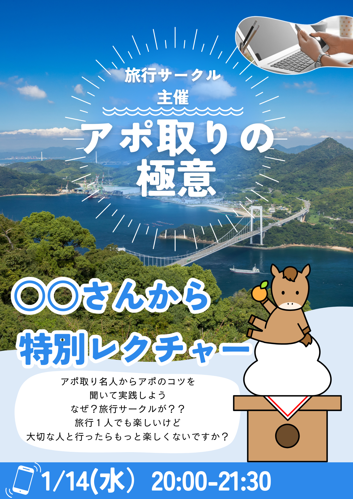 実は旅行サークルの運営メンバーは、アポ取りが得意な人たちが集まっています。