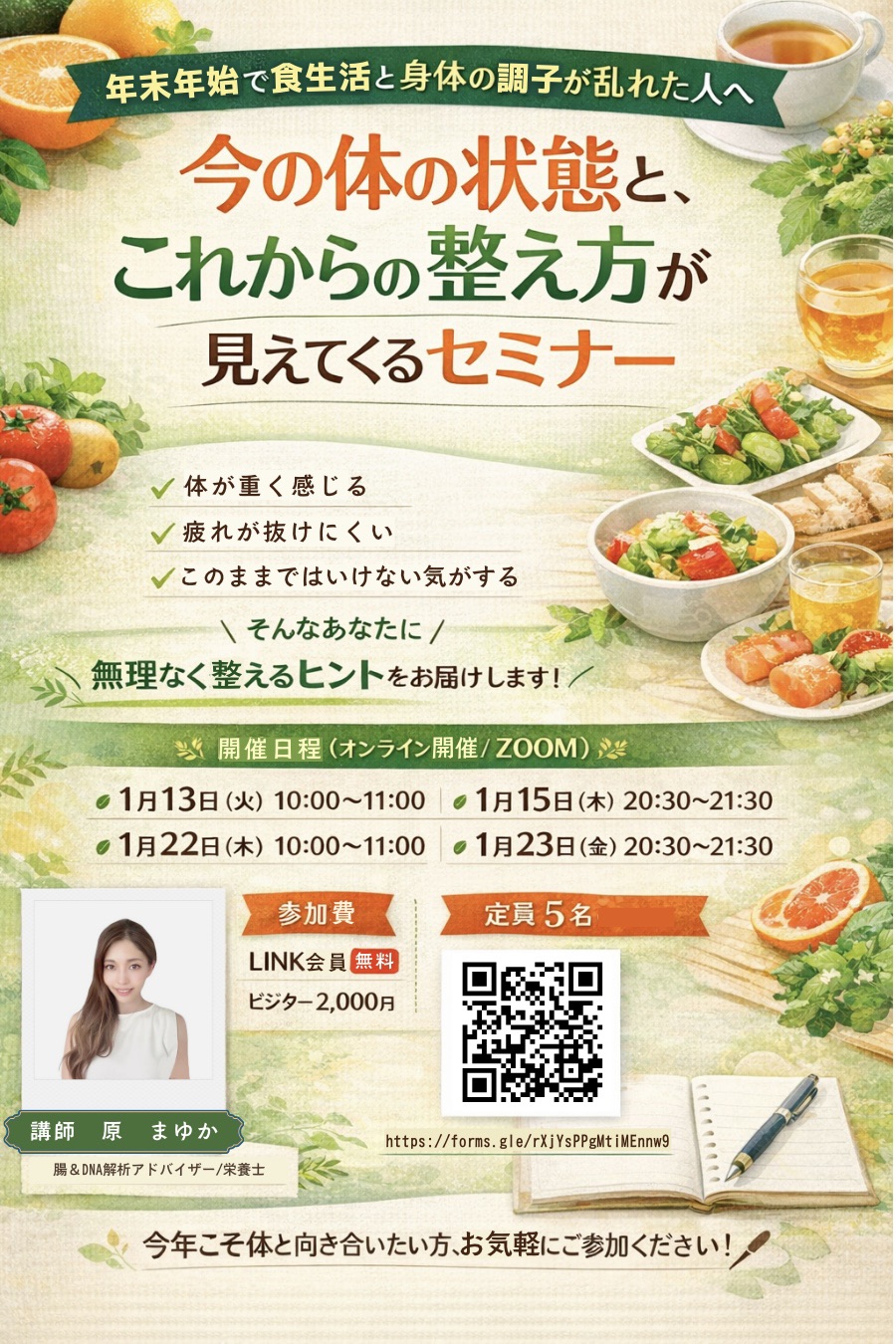年末年始で食生活と身体の調子が乱れた人へ 今の体の状態と、これからの整え方が見えてくるセミナー