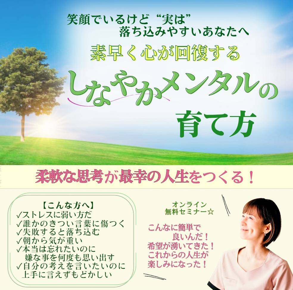 そんな私がねじれた思考の癖に気付き、楽に手放し無理せず根本からメンタルを変える事が出来た、誰にでも出来る方法をお伝え致します!