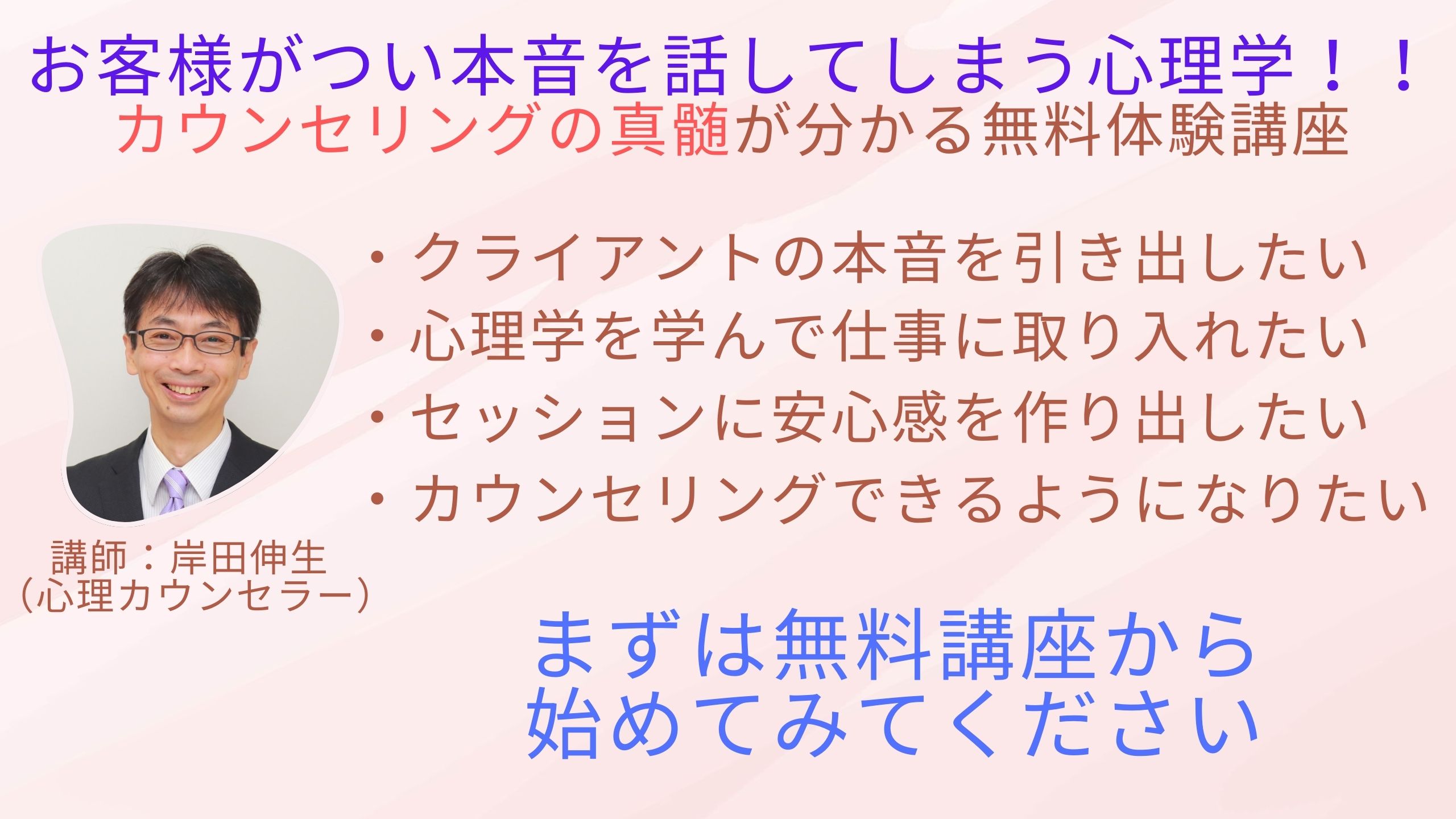 自分のカレンダーに追加 2026-02-04 15:00:00 2026-02-04 16:00:00 お客様がつい本音を話してしまう心理学!! カウンセリングの真髄が分かる無料体験講座 ページはこちら→https://link-event-x.com/index.php/node/11622 岸田伸生 岸田伸生 Asia/Tokyo public