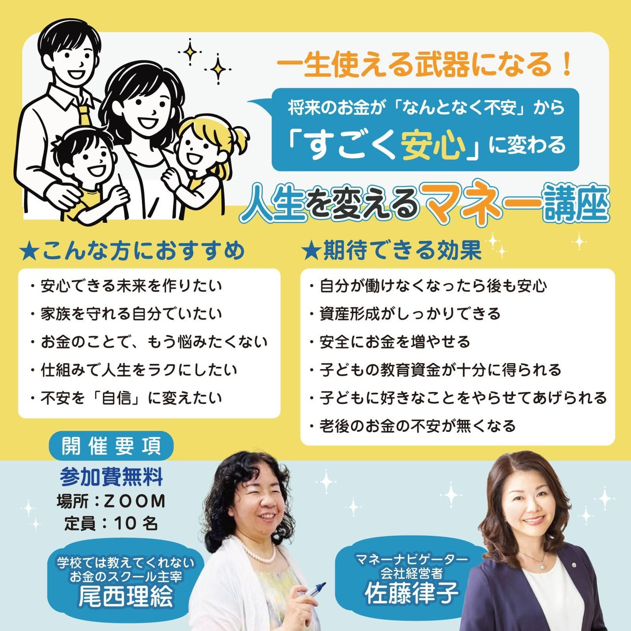 自分のカレンダーに追加 2026-02-13 15:00:00 2026-02-13 16:30:00 一生使える武器になる‼️将来のお金が「なんとなく不安」から「すごく安心」に変わる💡人生を変えるマネー講座💰 ページはこちら→https://link-event-x.com/index.php/node/11812 佐藤律子/尾西理絵 佐藤律子/尾西理絵 Asia/Tokyo public