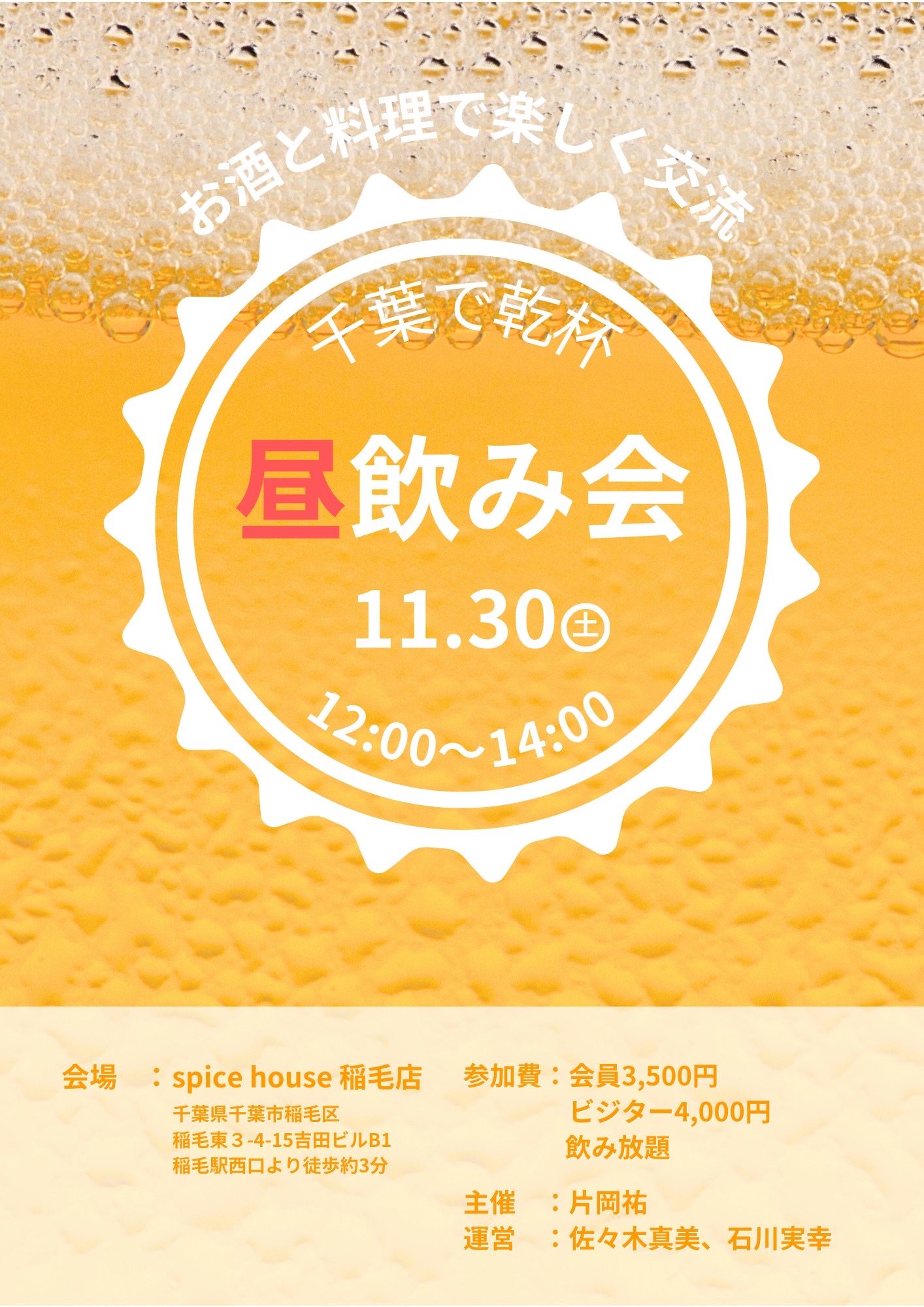 昼から楽しくほろ酔い気分で交流して、同じ千葉メンバーに顔を覚えてもらおう✨