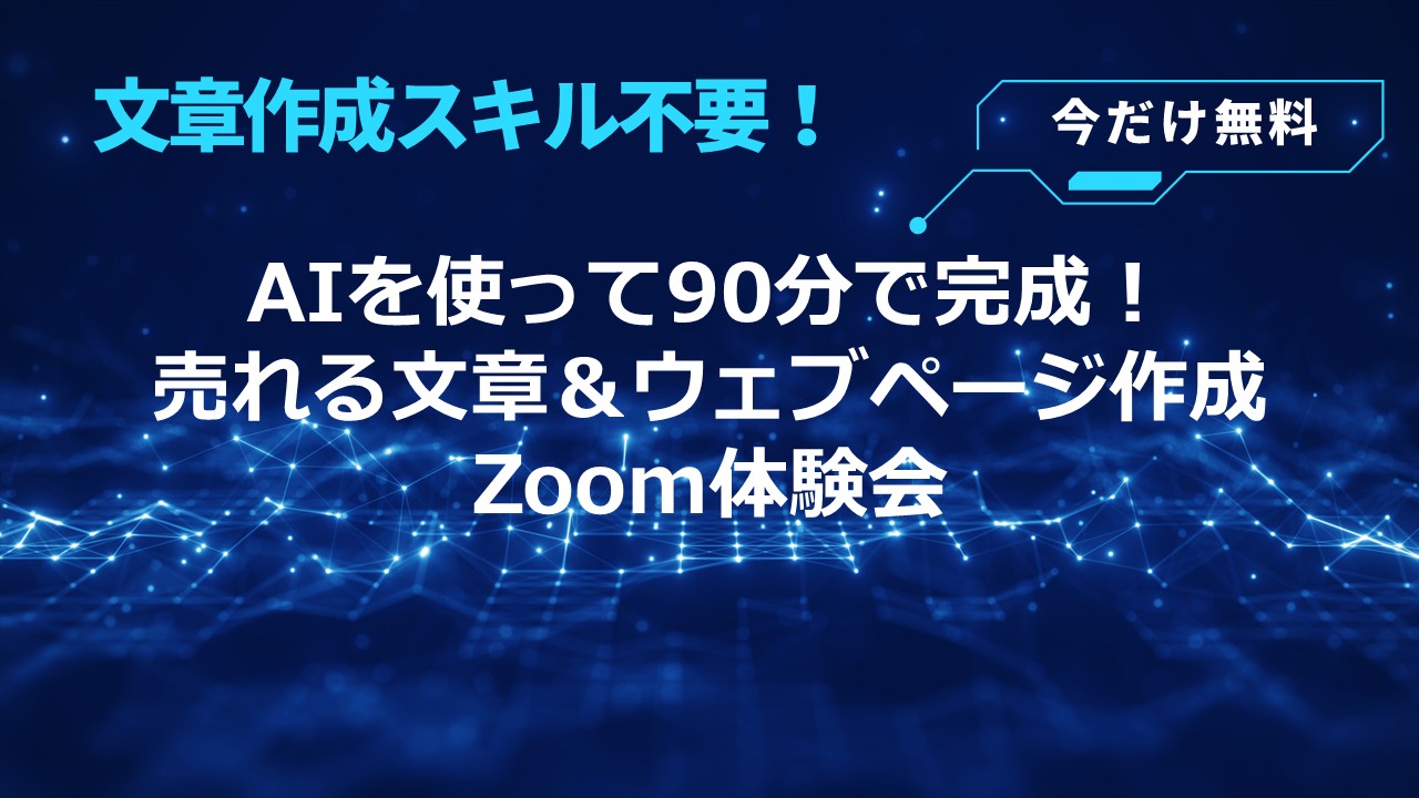 この体験会では、最新のAIを使って、セールスレター(販売文章)の作成から、それをウェブページ化するところまでを、その場で一気に体験できます。