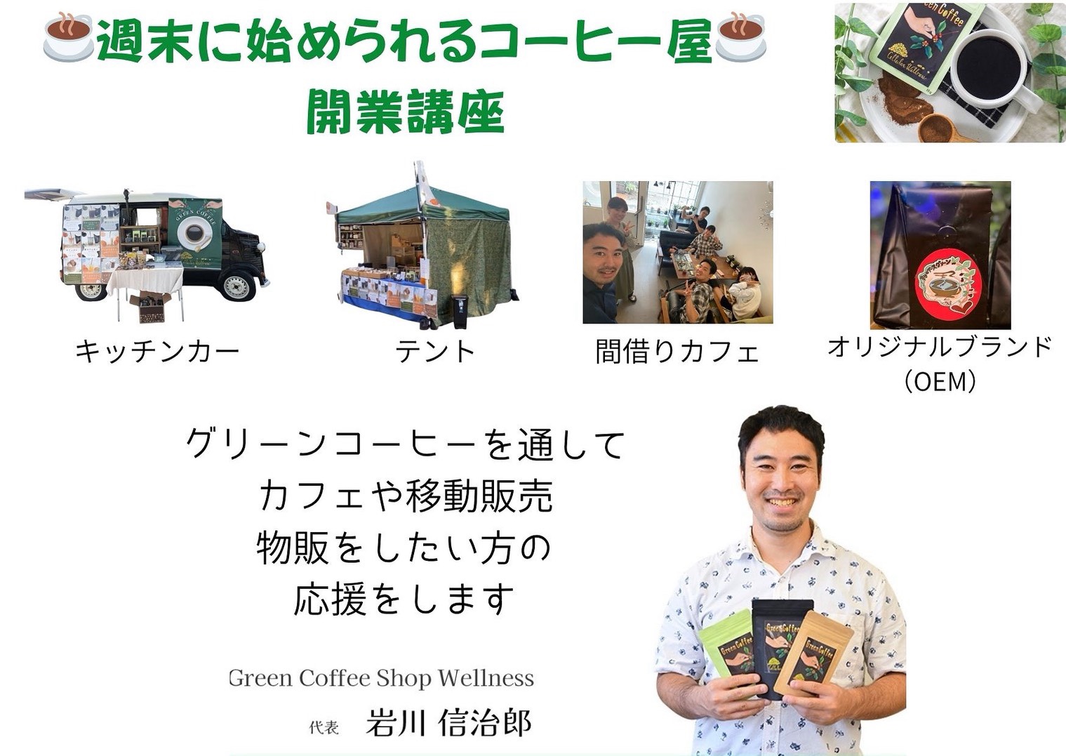 そんな方に、グリーンコーヒーを使った移動販売の始め方、間借りカフェの仕方、
