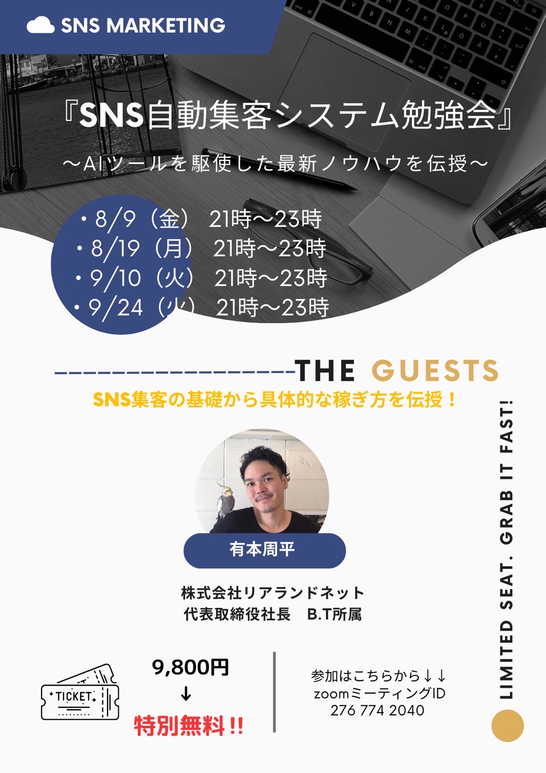 大好評につきSNS集客の基礎からマネタイズが学べる勉強会を開催します!!