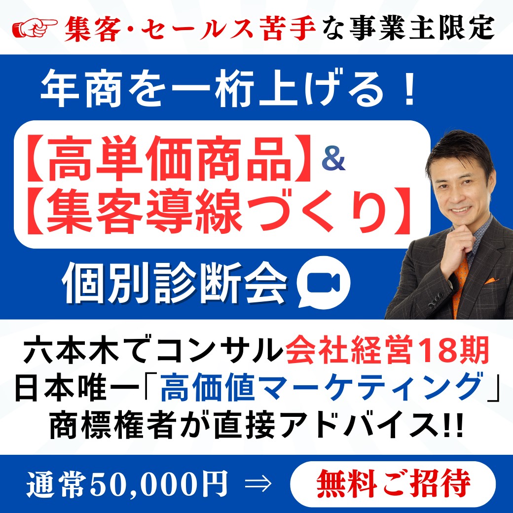 高単価商品の集客を専門とする日本唯一の【高価値マーケティング】商標権者。