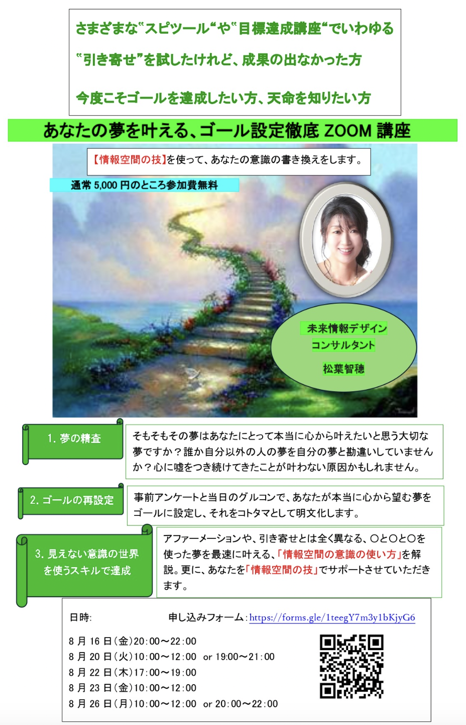 🏠zoom URL: トピック: あなたの夢を叶えるゴール設定徹底講座