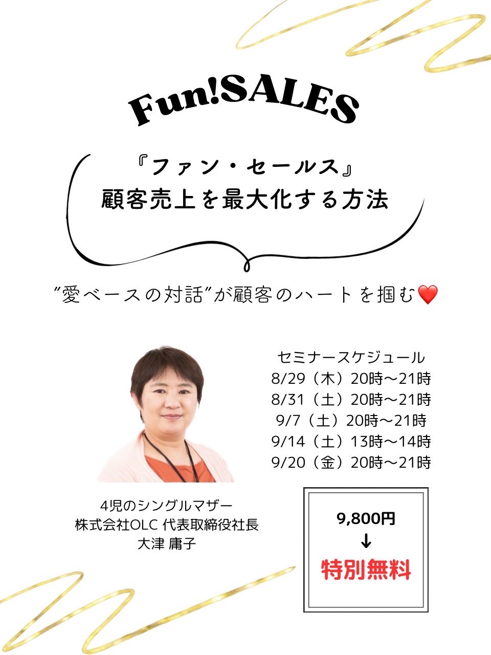 私が30年の営業経験から培った、愛に溢れる『ファン・セールス』の極意をセミナーでお伝えします👍