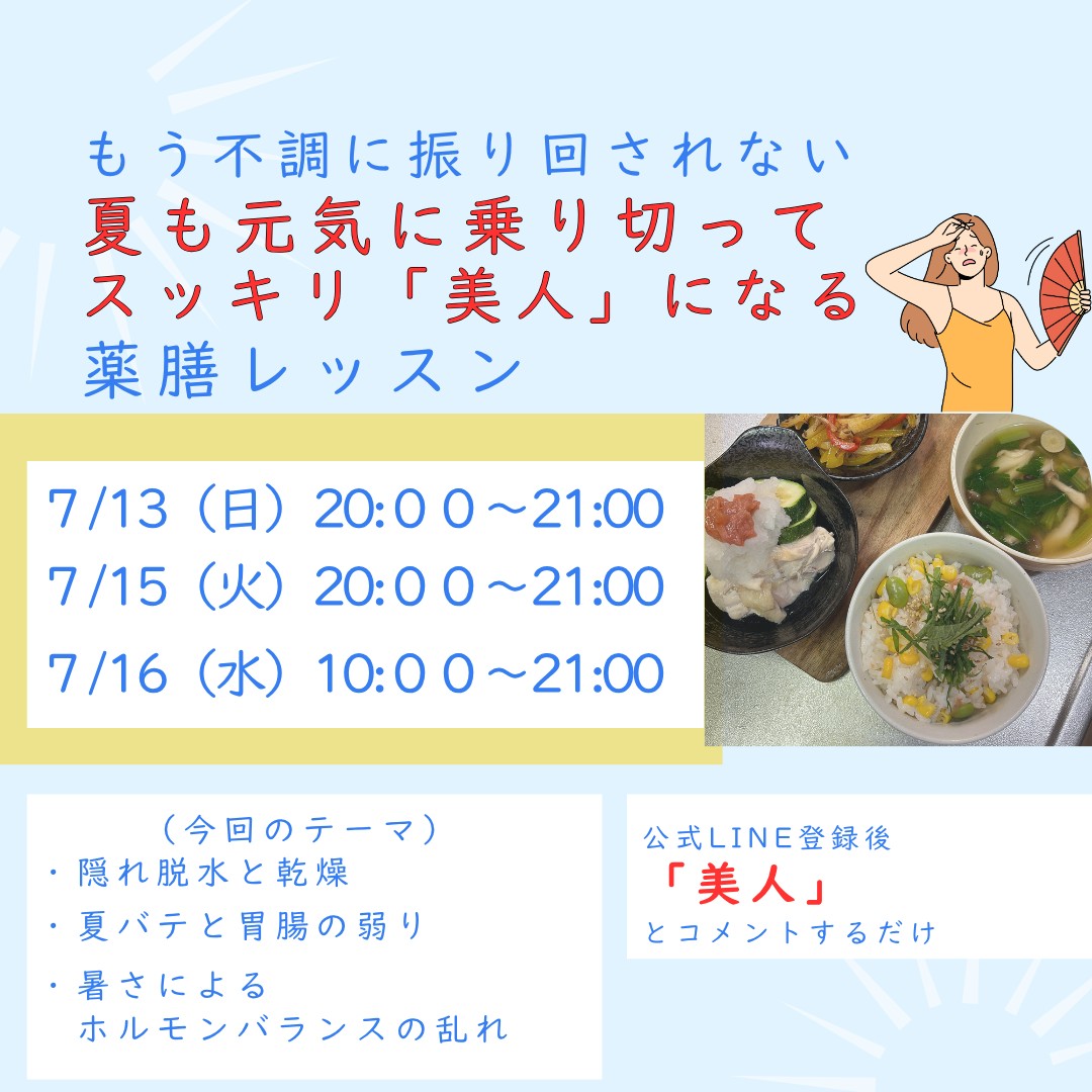 「夏の体を元気に保つ薬膳の整え方」をお伝えします!