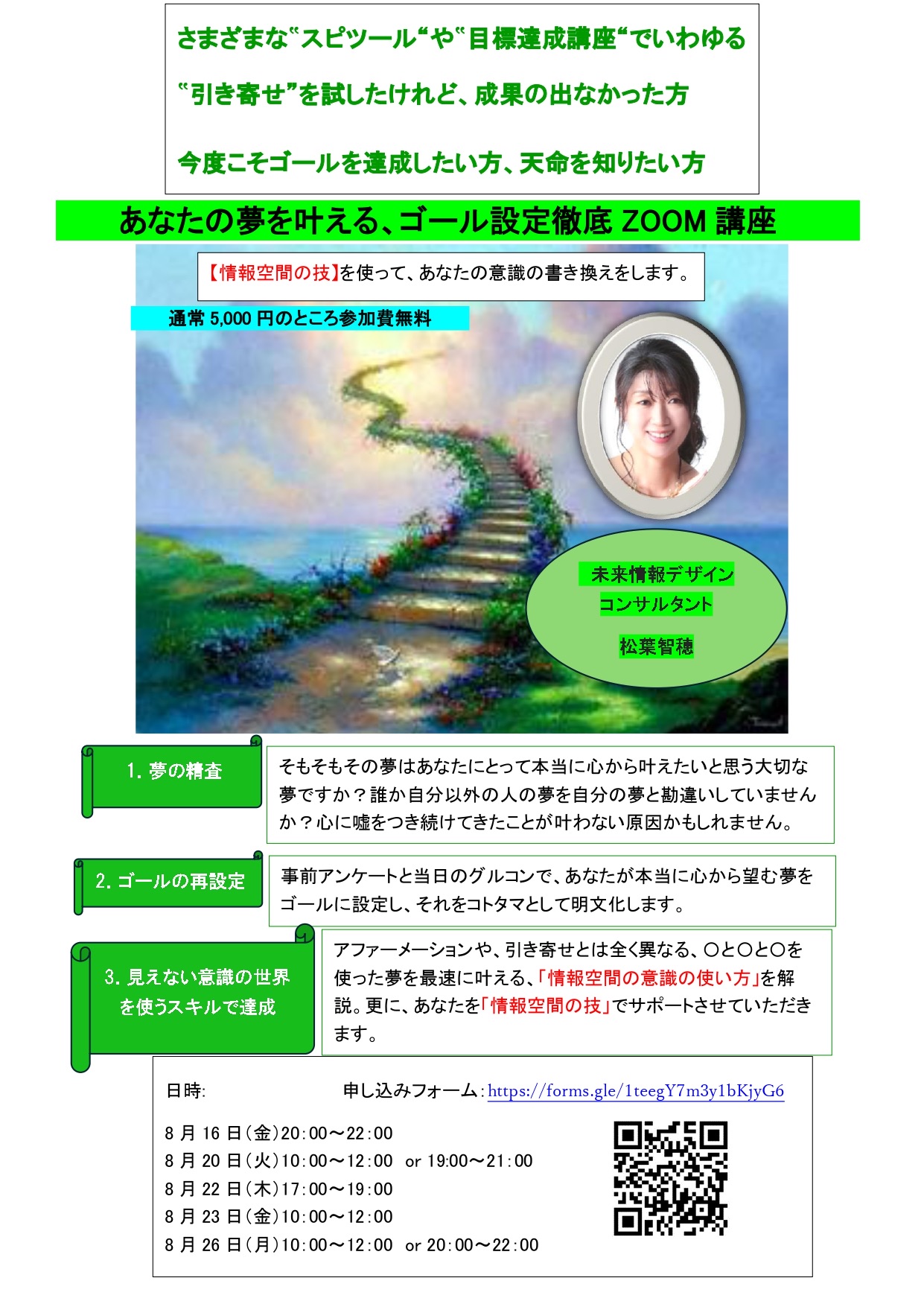 🏠zoom URL: トピック: あなたの夢を叶えるゴール設定徹底講座