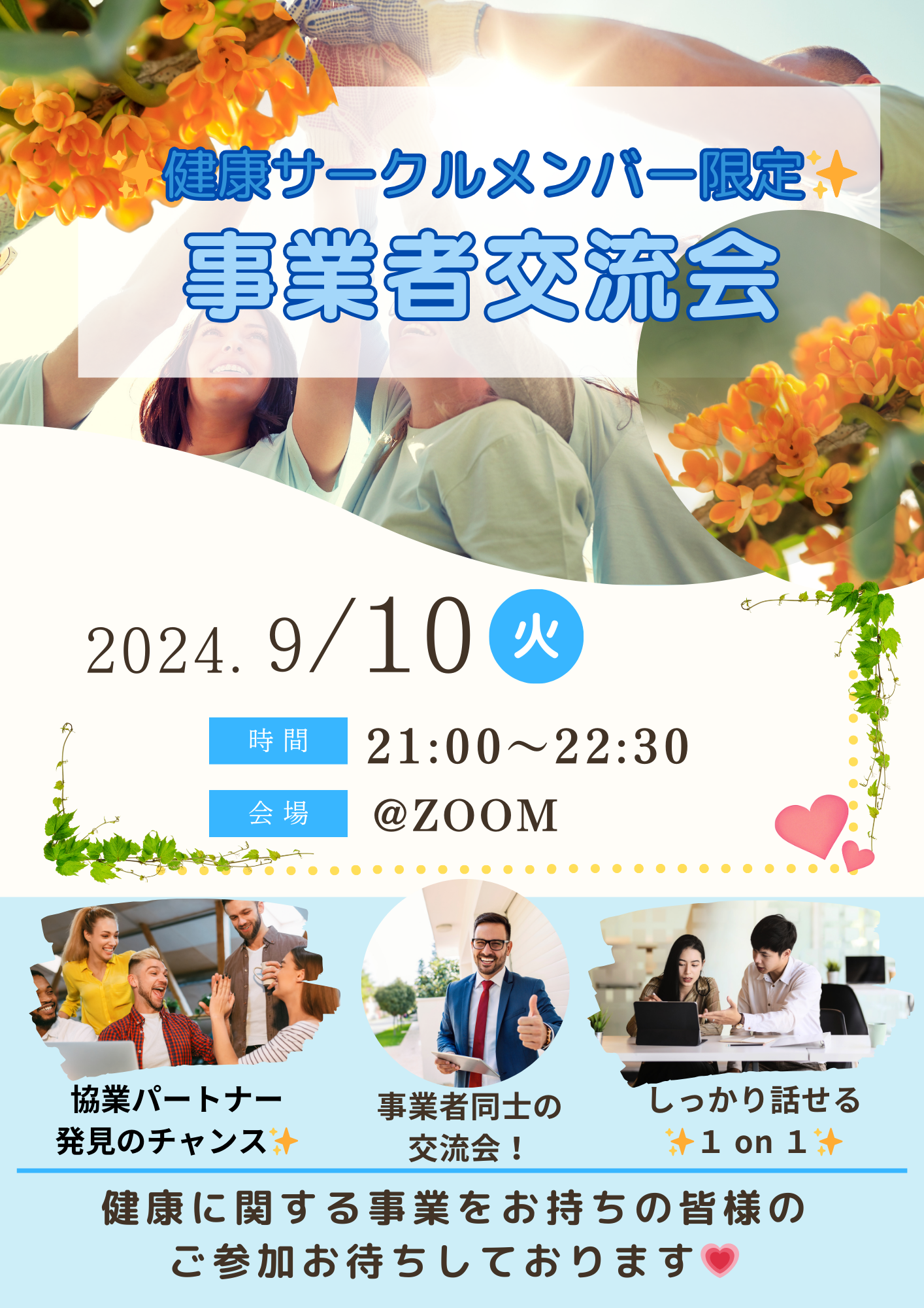 🔶健康事業について、新しい協業やビジネスにつながるきっかけつくりに最適🌸🌻💛