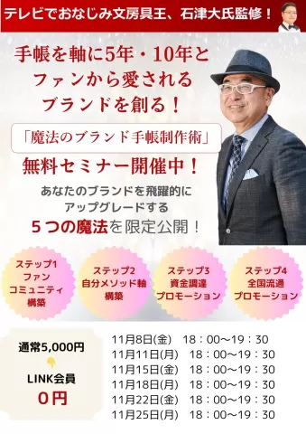 テレビでおなじみの文房具王、石津大(ひろし)氏監修「魔法のブランド手帳制作術」体験セミナー