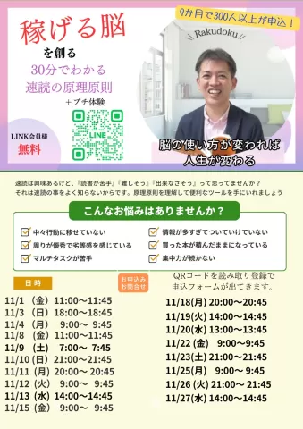 稼げる脳を作る! 30分で分かる速読の原理・原則+プチ体験講座
