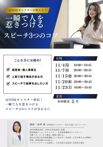 元NHKキャスターが教える!一瞬で人を惹きつけるスピーチ3つのコツ