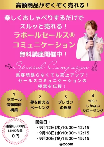 「楽しくおしゃべりするだけでスルッと売れる!」 ラポールセールス®コミュニケーション