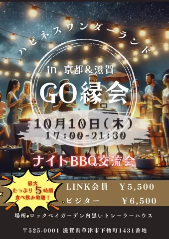 ❤️ハピネスワンダーランド❤️ GO縁会〜IN京都・滋賀🍻ナイトBBQ交流会🍻