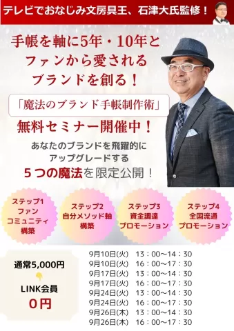 💻テレビでおなじみの文房具王、石津大(ひろし)氏監修「魔法のブランド手帳制作術」体験セミナー