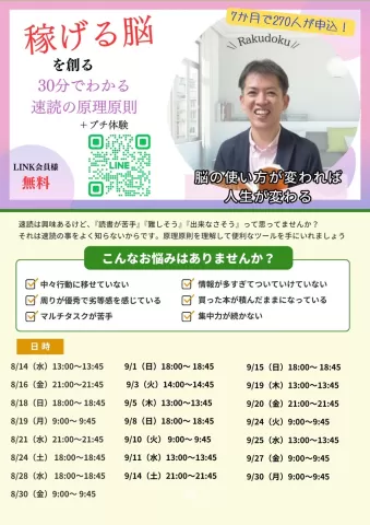 稼げる脳を作る! 30分で分かる速読の原理・原則講座+プチ体験