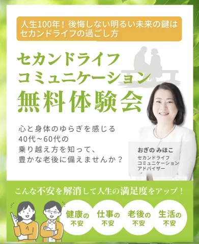 人生100年!後悔しない明るい未来の鍵はセカンドライフの過ごし方「セカンドライフコミュニケーション」無料体験講座