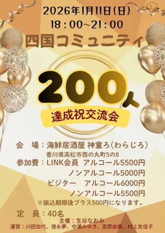 四国コミュニティ200人達成祝交流会