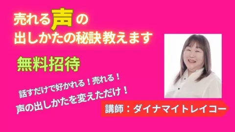 🧨ダイナマイトレイコーの💥 声の出し方を変えただけで売り上げ200%アップ💥話すだけで思わず好かれちゃう 【売れる声の出し方の秘訣教えます👍✨】講座