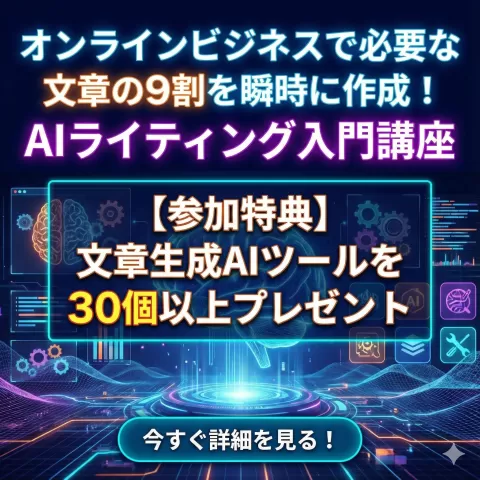 【文章生成AIツールを30個以上プレゼント】 オンラインビジネスで必要な文章の9割を瞬時に作成!AIライティング入門講座