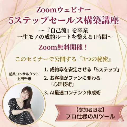 Zoomウェビナー 5ステップセールス構築講座 〜「自己流」を卒業。一生モノの成約ルートを整える1時間〜