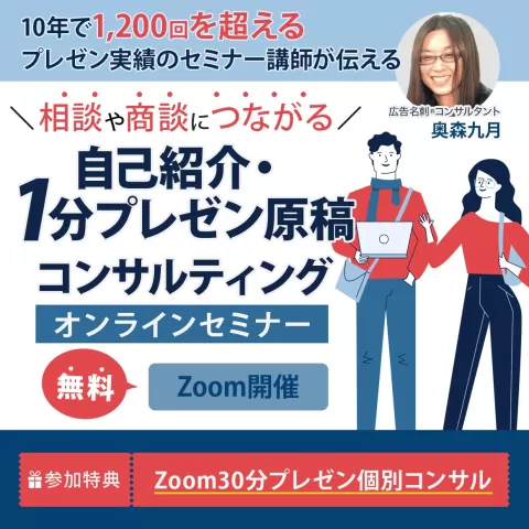 10年で1,200回を超えるプレゼン実績のセミナー講師が伝える ! 相談や商談につながる「自己紹介・1分プレゼン原稿コンサルティング」オンライン無料講座
