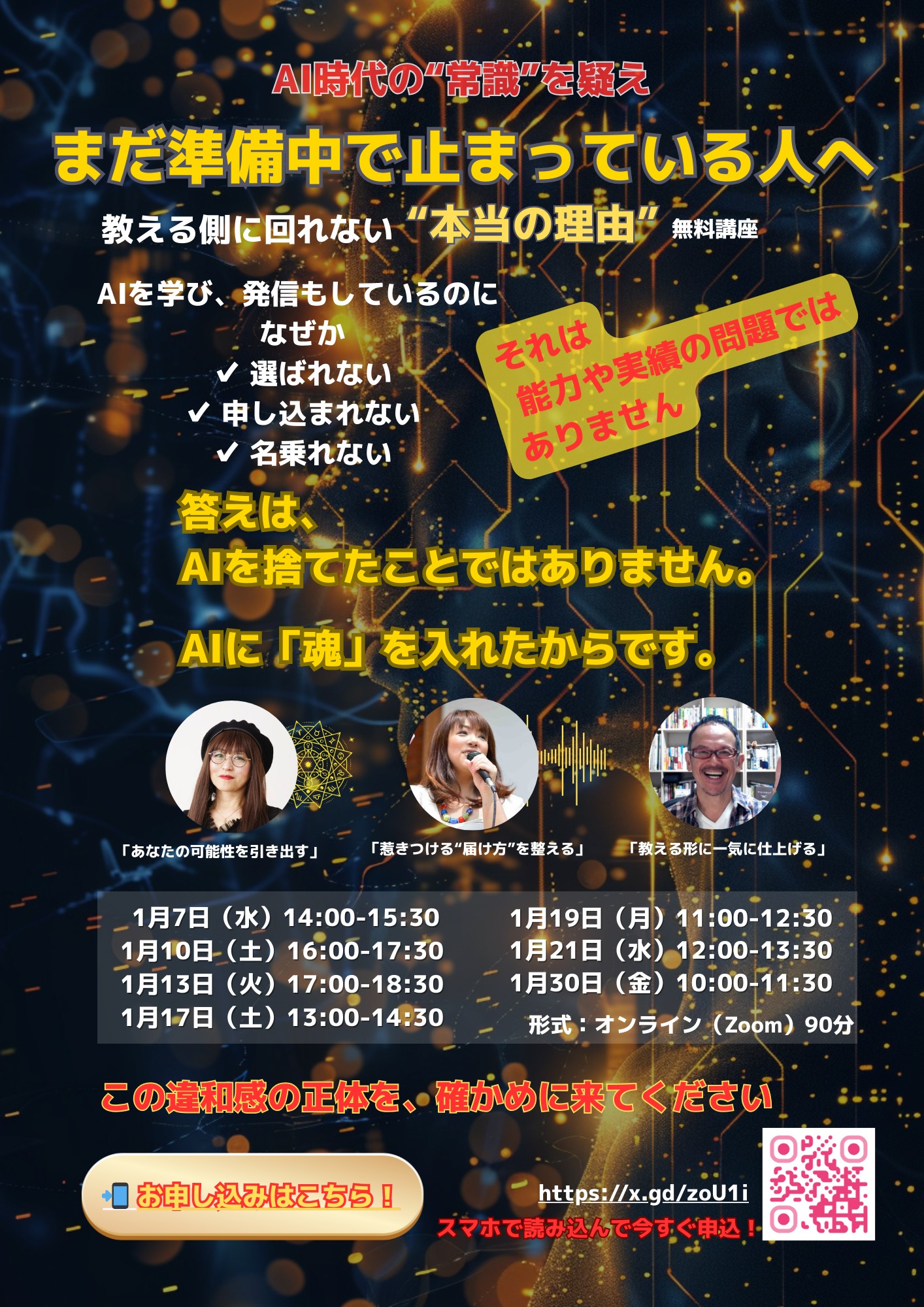 まだ準備中で止まっている人へ 教える側に回れない“本当の理由”無料講座 ― めぐみ × よりこ × 高橋トヲル コラボ ―