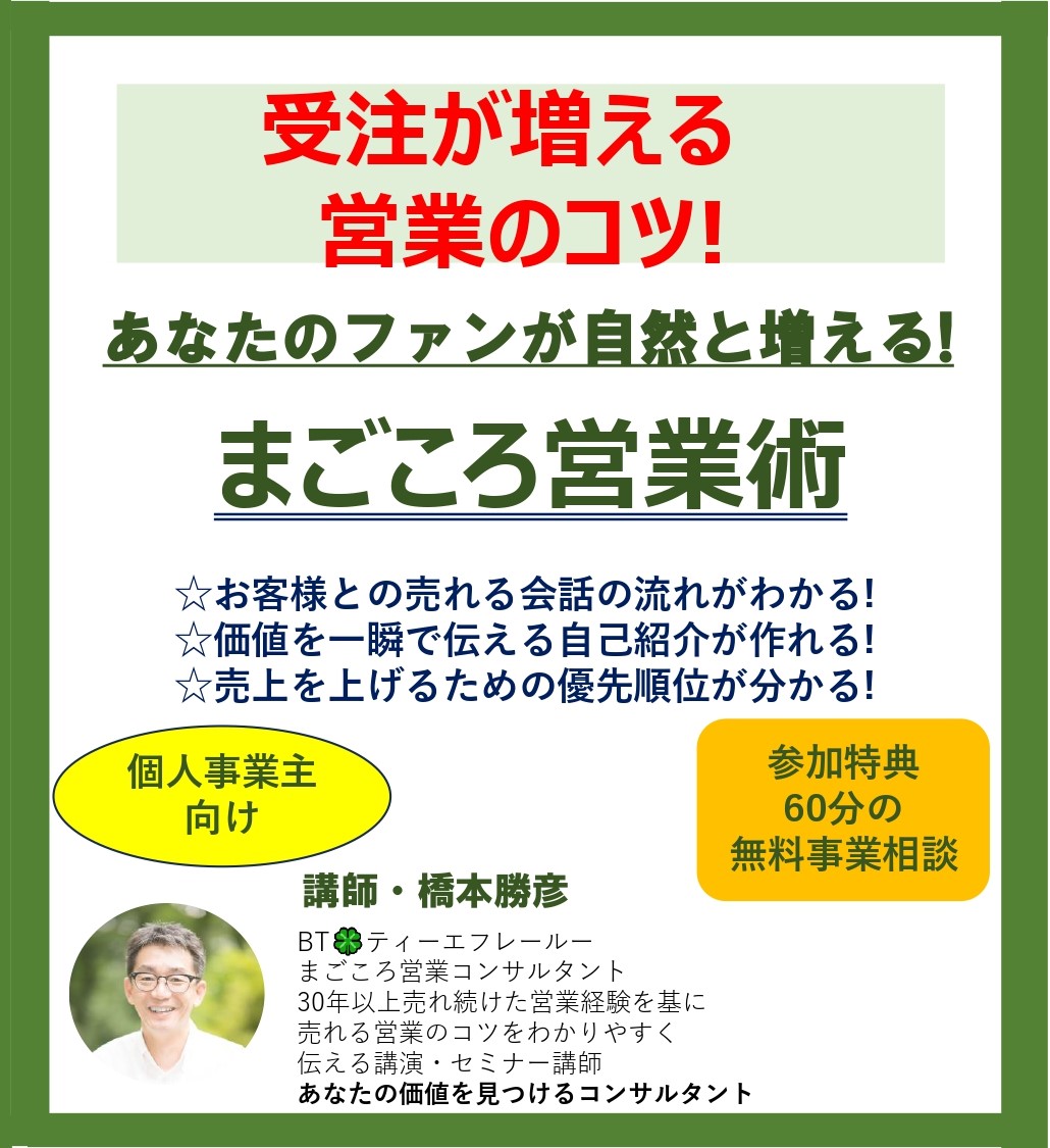 個人事業主向けまごころ営業セミナー!
