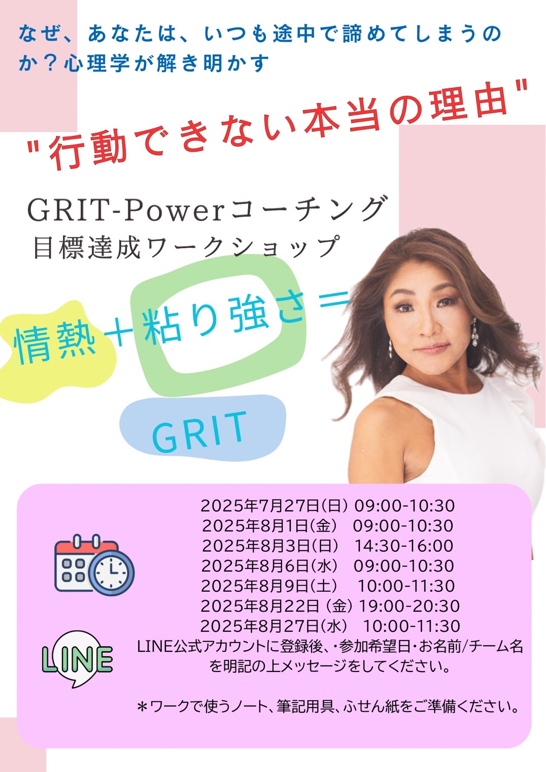 ■「GRIT=情熱🔥・粘り強さ GRIT-Power コーチング・目標設定ワークショップ」内容