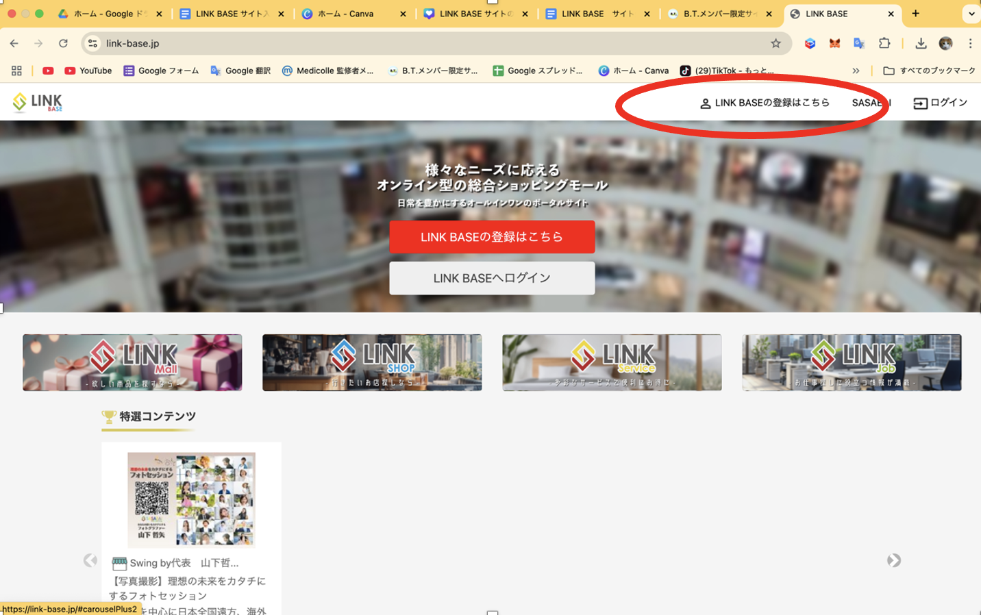 「LINK BASEの登録はこちら」