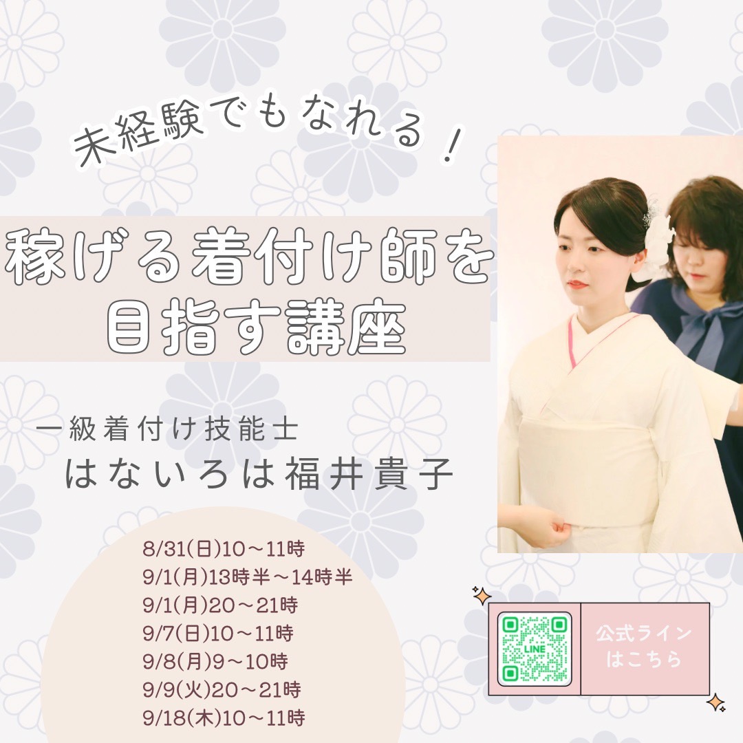この講座では、高額な教室や特別なセンスがなくても“稼げる着付け師”を目指せる方法をお伝えします。