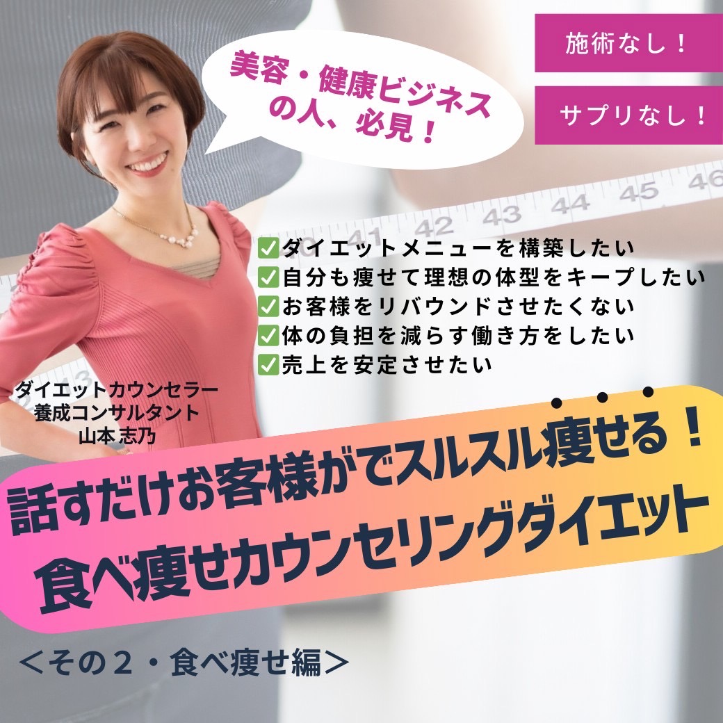 💖美容、健康ビジネスの人💖必見! 話すだけお客様がでスルスル痩せる!食べ痩せカウンセリングダイエット <その2・あなたもお客様も食べて痩せる方法>