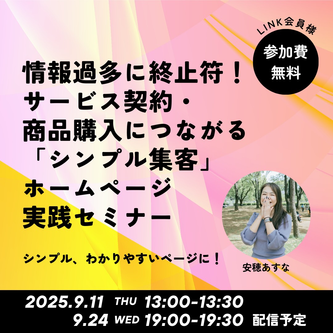 情報過多に終止符! サービス契約・商品購入につながる 「シンプル集客」ホームページ実践セミナー