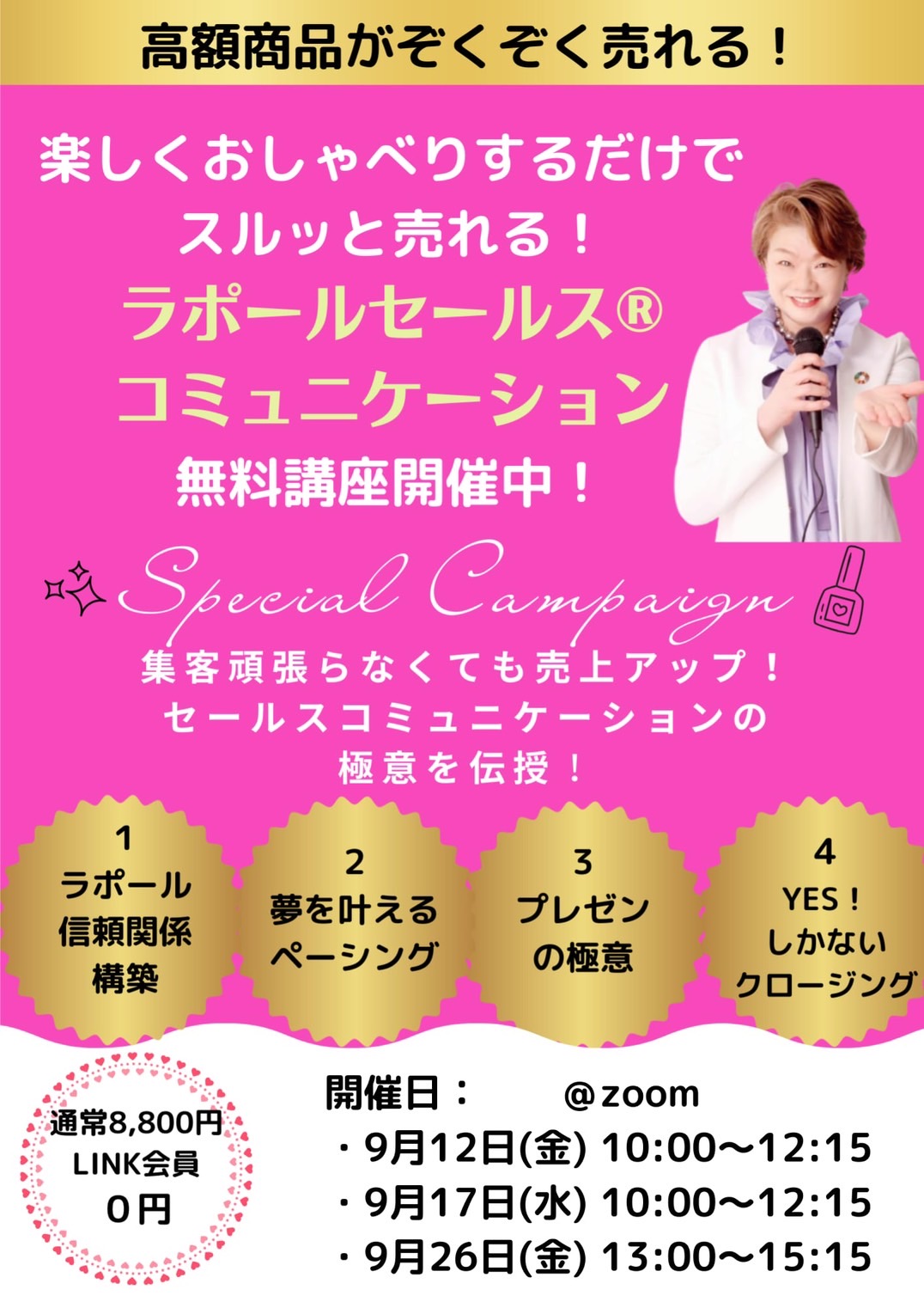 LINK会員様には是非是非身につけて頂きたいセールス・コミュニケーションのスキルをグッと2時間に凝縮してお伝えします✨