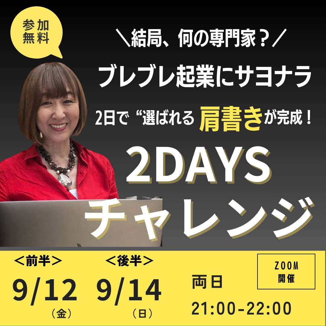 \結局、何の専門家?/ ブレブレ起業を卒業して “選ばれる肩書き”が完成する2DAYSチャレンジ