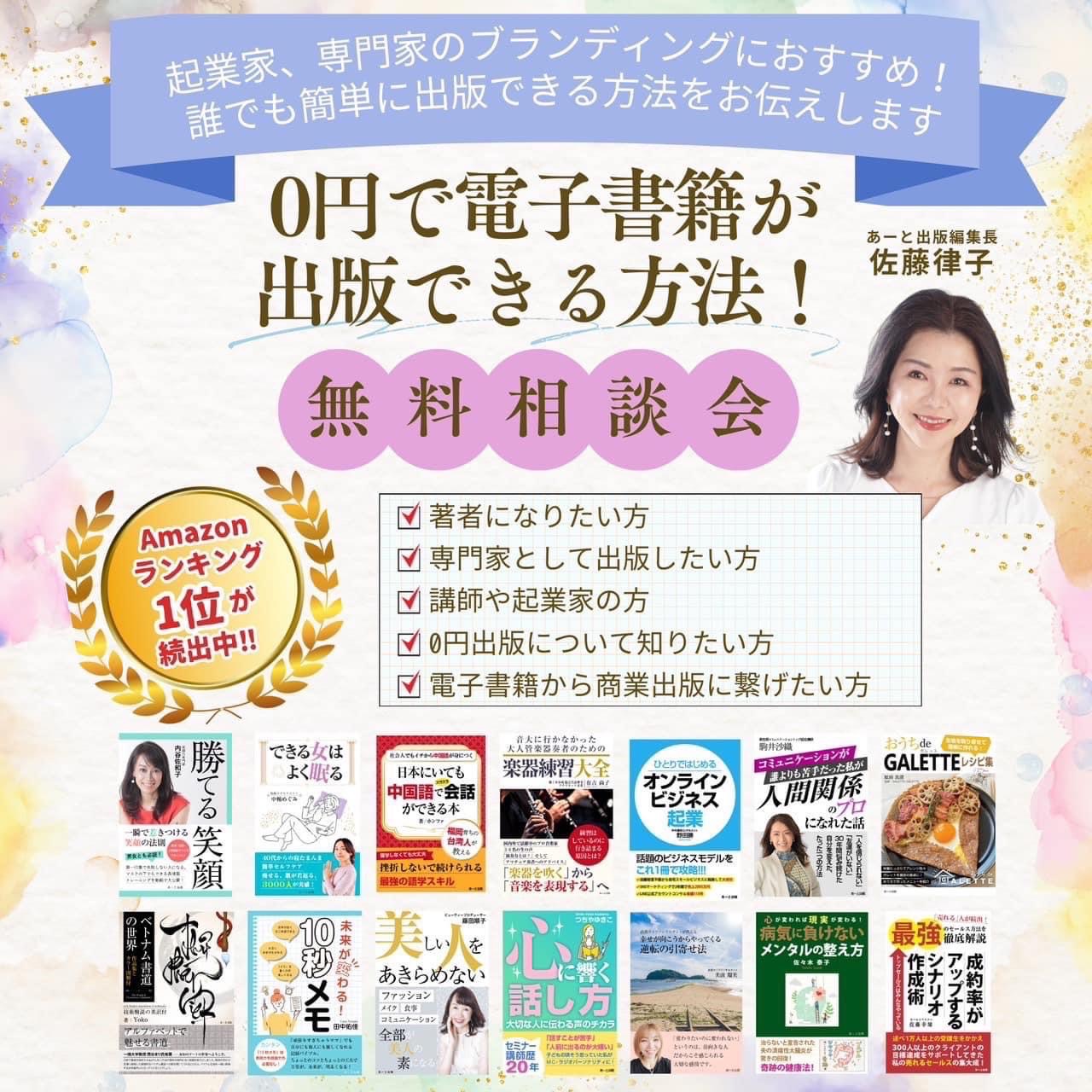全員がAmazon1位📗著者になる夢が叶う✨0円で出版できる方法💙無料相談会