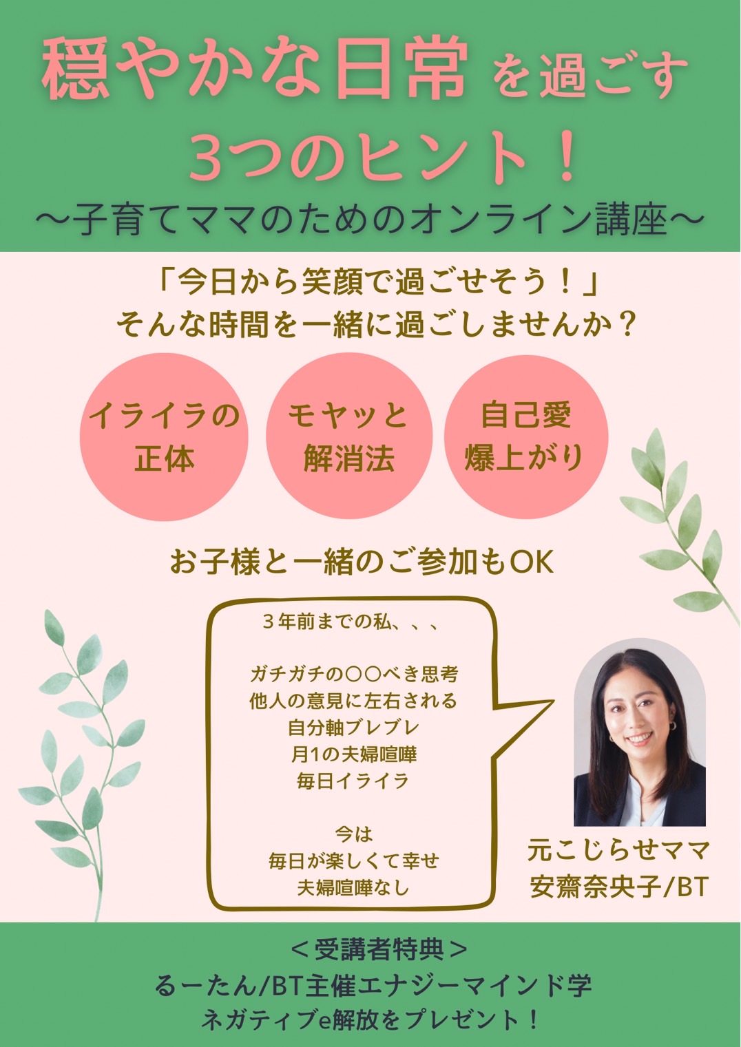 この変化を経験した私から、同じように悩むママたちにも体験してほしいと願って作ったのがこの講座です。