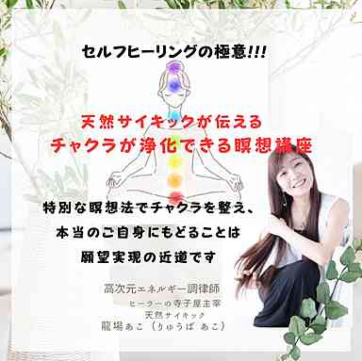 自分のカレンダーに追加 2025-10-24 10:00:00 2025-10-24 11:00:00 🌈現実を動かしたい方へ🌈 天然サイキック✨がお伝えする、 【チャクラが浄化できる瞑想法講座】セルフヒーリングの極意 ページはこちら→https://link-event-x.com/node/8155 龍場 あこ(りゅうば あこ) 龍場 あこ(りゅうば あこ) Asia/Tokyo public